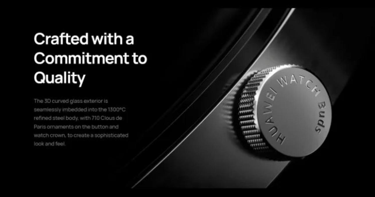 The 3D curved glass exterior is seamlessly imbedded into the 1300°C refined steel body, with 710 Clous de Paris ornaments on the button and watch crown, to create a sophisticated look and feel. |